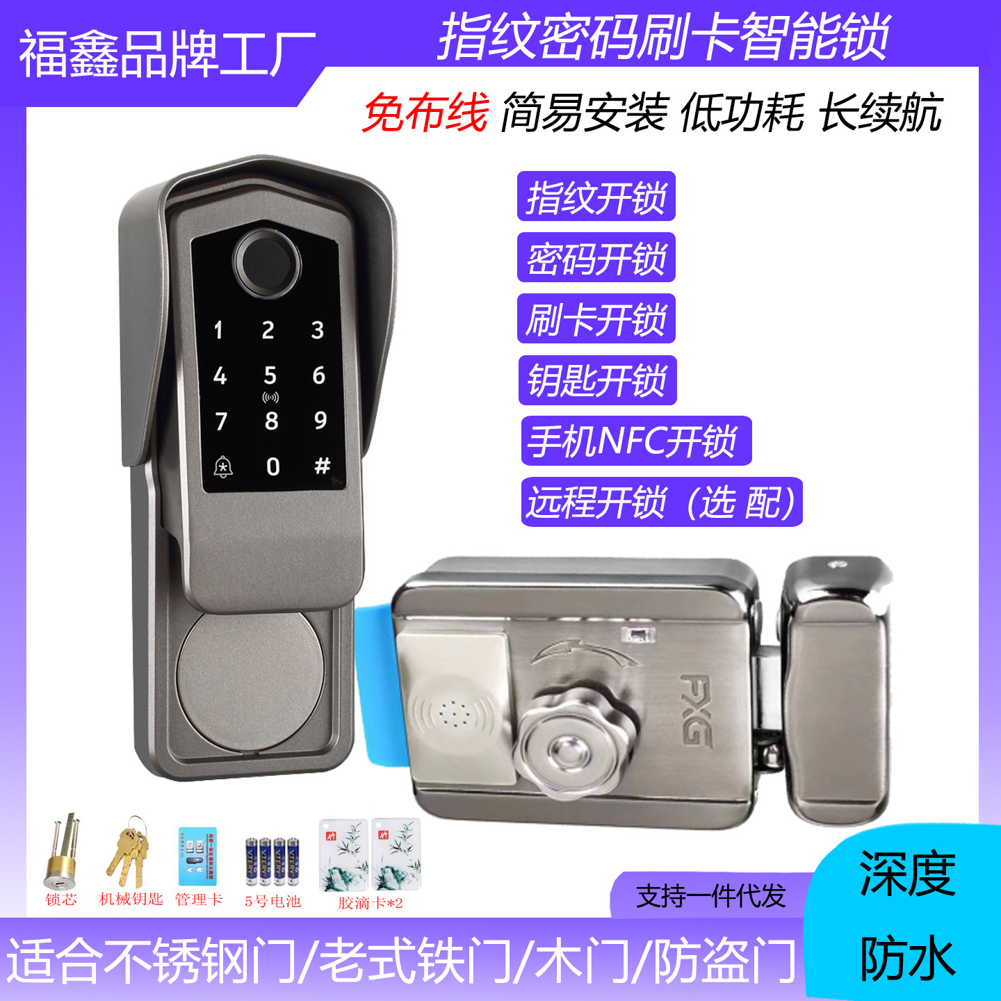 Kunci sidik jari modifikasi pintu anti-pencurian model lama Pengenalan wajah pintu halaman kunci kode sandi pintu besi besar kunci kepala sapi kunci pintar tahan air
