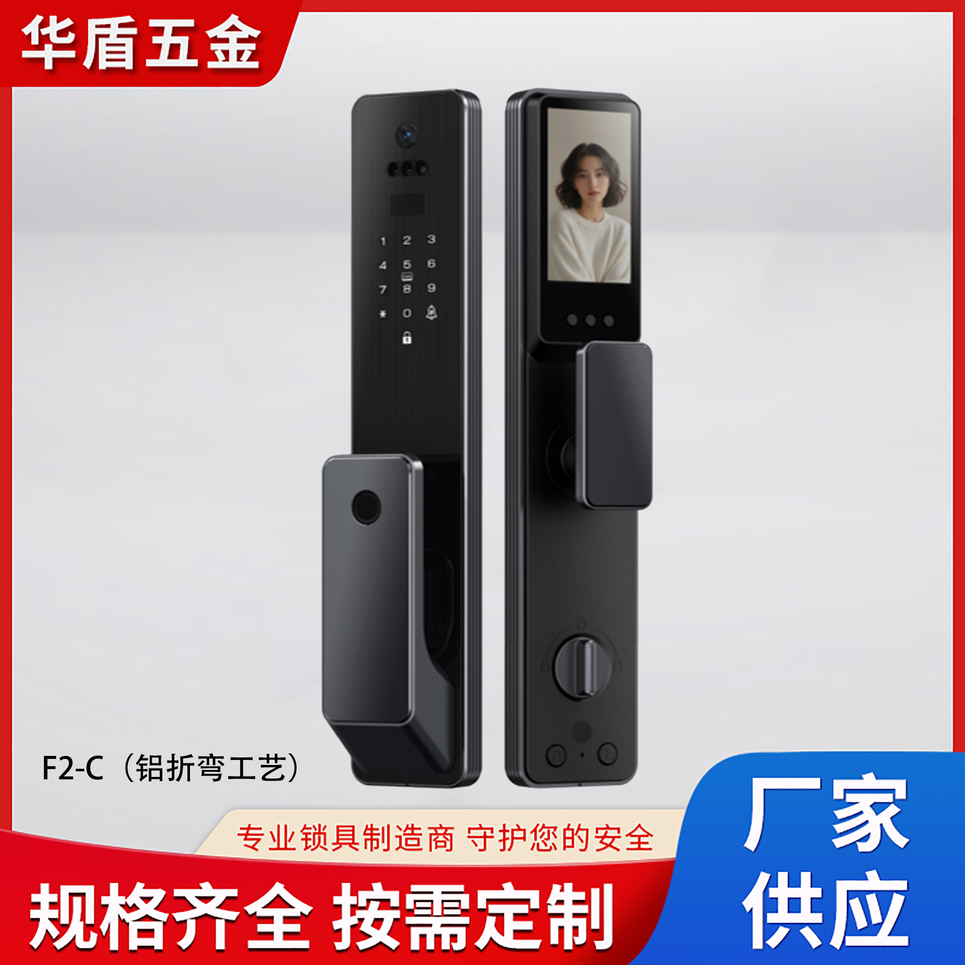 Haodi F2C Kunci Sidik Jari Otomatis Otomatis Mata Kucing Pengenalan Wajah Kunci Pintar Pintu Rumah Tangga