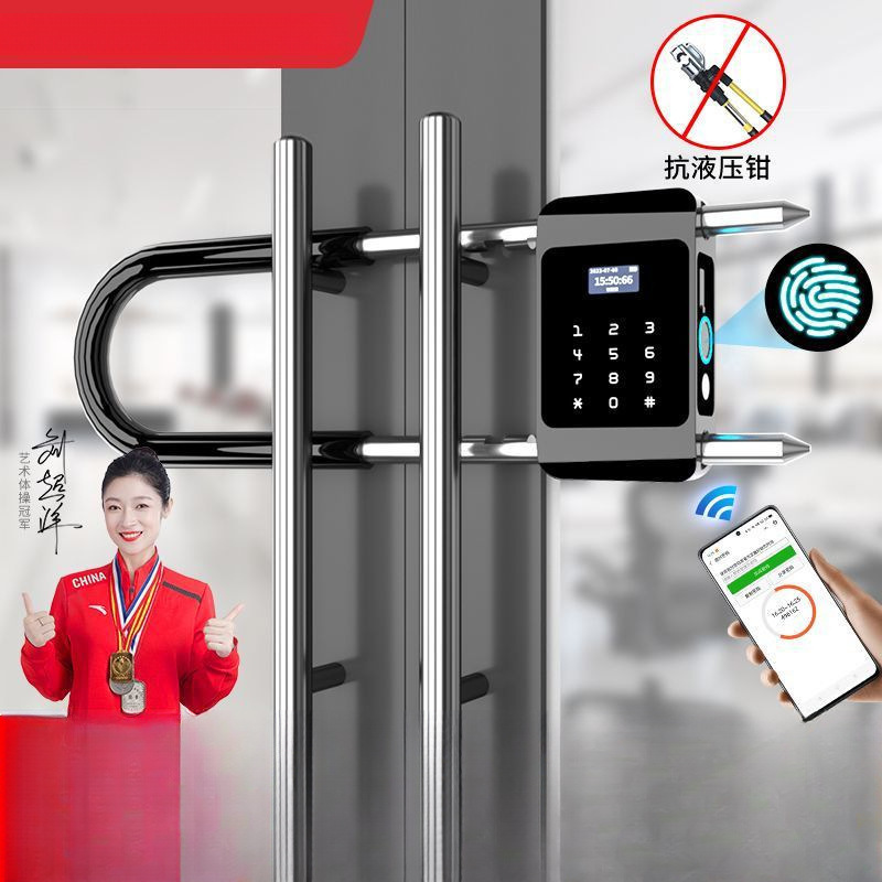 Hitam Layar Pintu Kaca Kunci Sidik Jari Bentuk Kunci Kunci Bentuk U Toko Toko Toko Cerdas Luar Ruangan Kunci Kunci Elektronik Bentuk U
