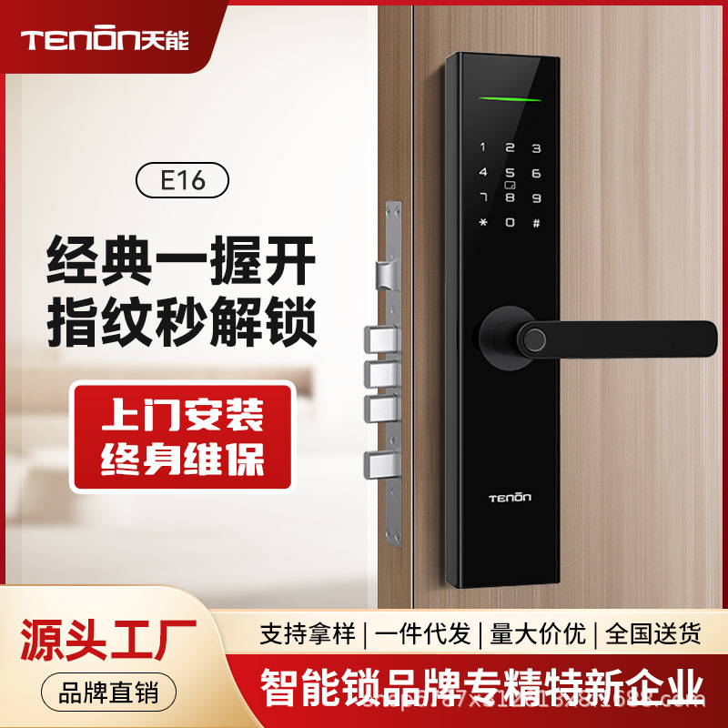 Asia Pacific Tien dapat membuka kunci sidik jari dengan satu pegangan, kunci cerdas, toko utama, kunci elektronik, kunci pintu cerdas induksi otomatis, E16