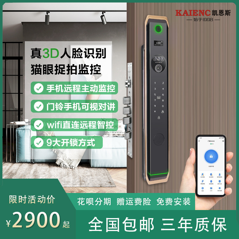 Kunci jaringan WIFI wajah 3D, telepon seluler video sidik jari kunci pintar Buka kunci jarak jauh kartu kata sandi pintu kayu rumah