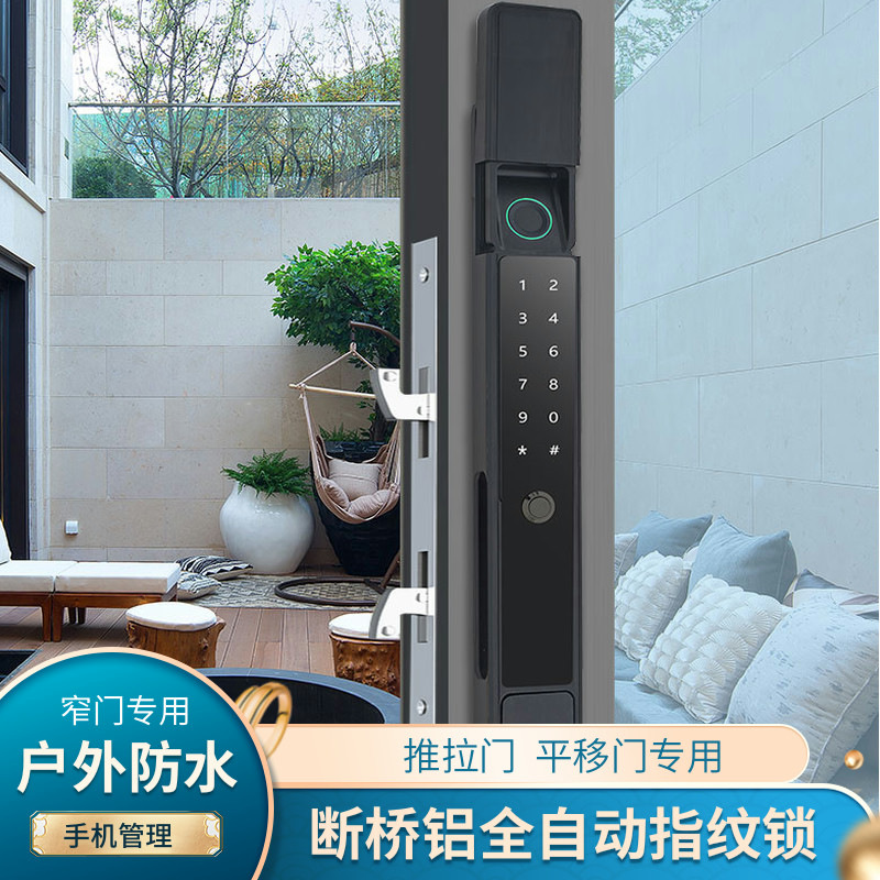 Kunci pintu otomatis, outdoor tahan air tabir surya jembatan rusak kunci pintu aluminium pintu geser pintu kaca sisi ganda sidik jari kata sandi kunci wajah