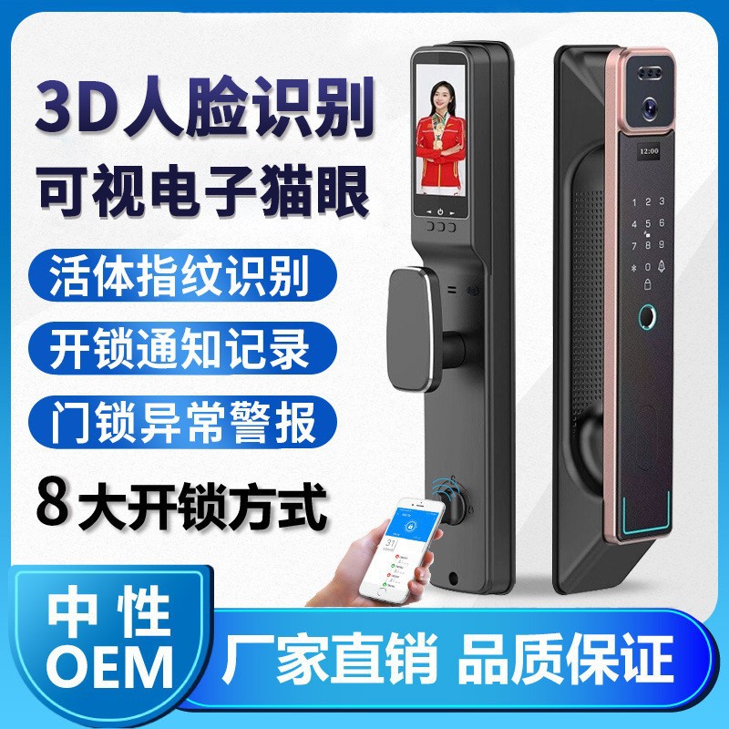Mata Kucing otomatis wajah 3D dengan layar kunci sidik jari pintu kayu rumah tangga anti-maling kunci sidik jari pintu dengan produsen interkom visual