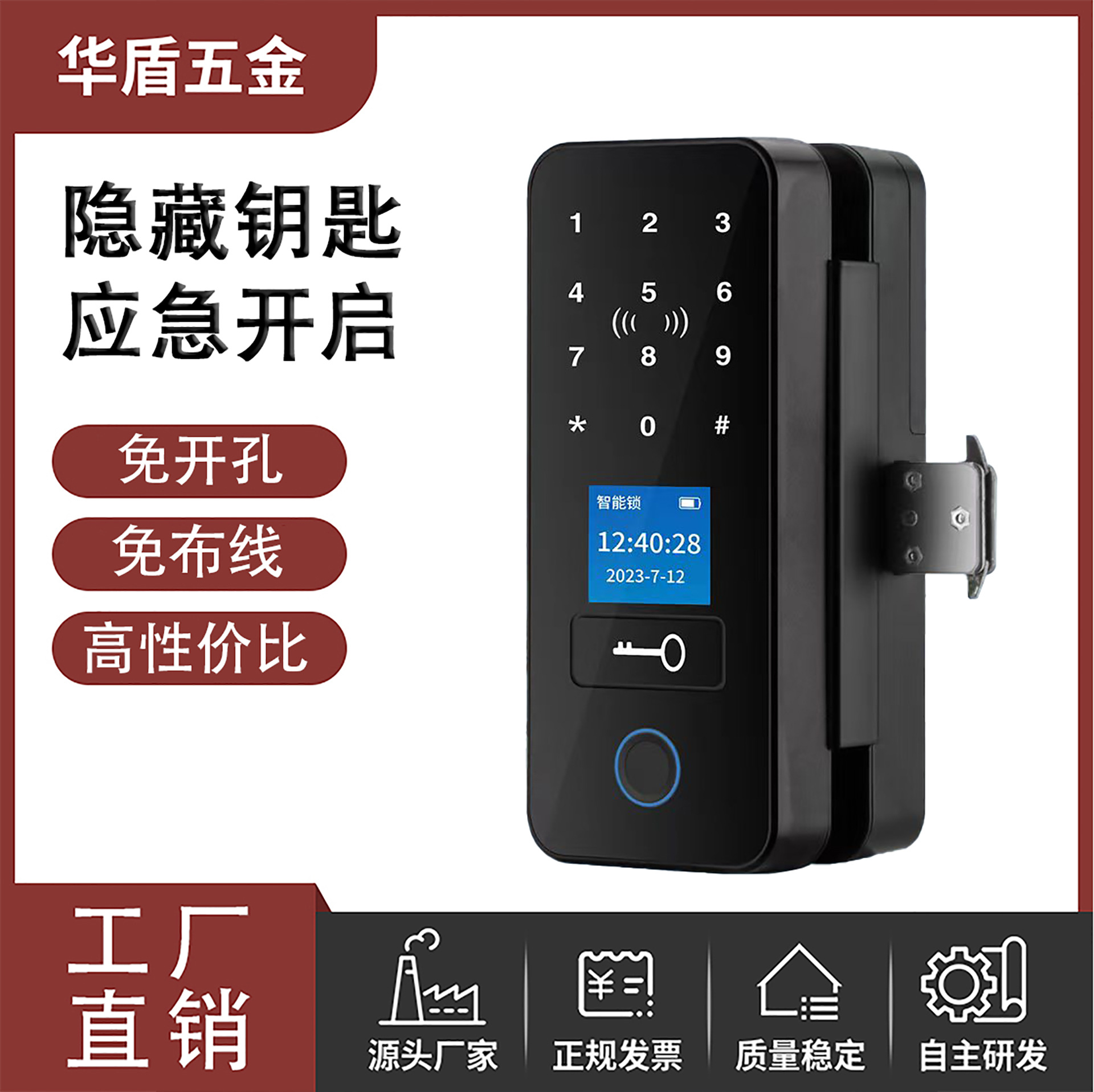 Produk Baru Perdagangan Luar Negeri Pintu Kaca Kantor Tanpa Kabel Fingerprint