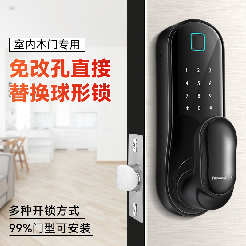 Kunci bulat pintar sidik jari, lintas batas perdagangan luar negeri kunci apartemen kantor pintu kayu ruang bola grafiti Bluetooth