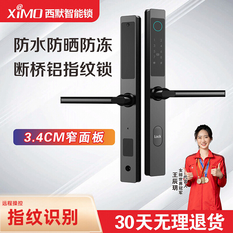 Kunci sidik jari aluminium jembatan rusak kunci kata sandi pintu kaca pintu geser pintu halaman luar ruangan tahan air simmer kunci pintar