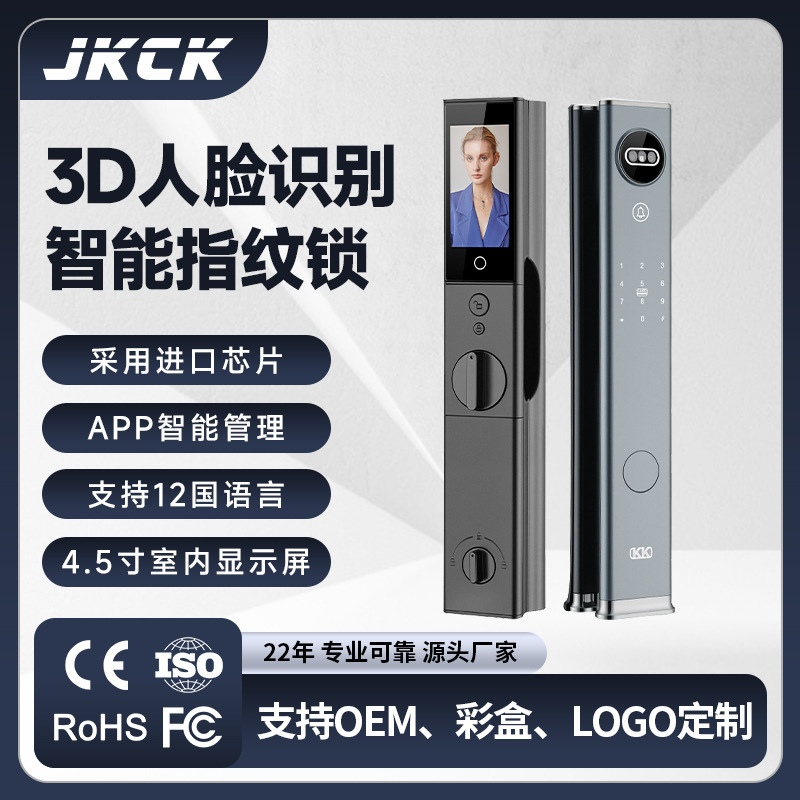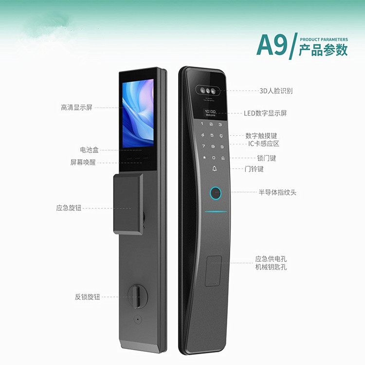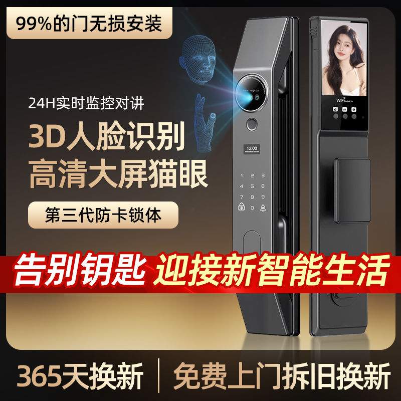 Kunci kode pintu anti-pencurian kunci sidik jari interkom video kunci pintar pengenalan wajah rumah tangga kunci pintu pintar 3D otomatis