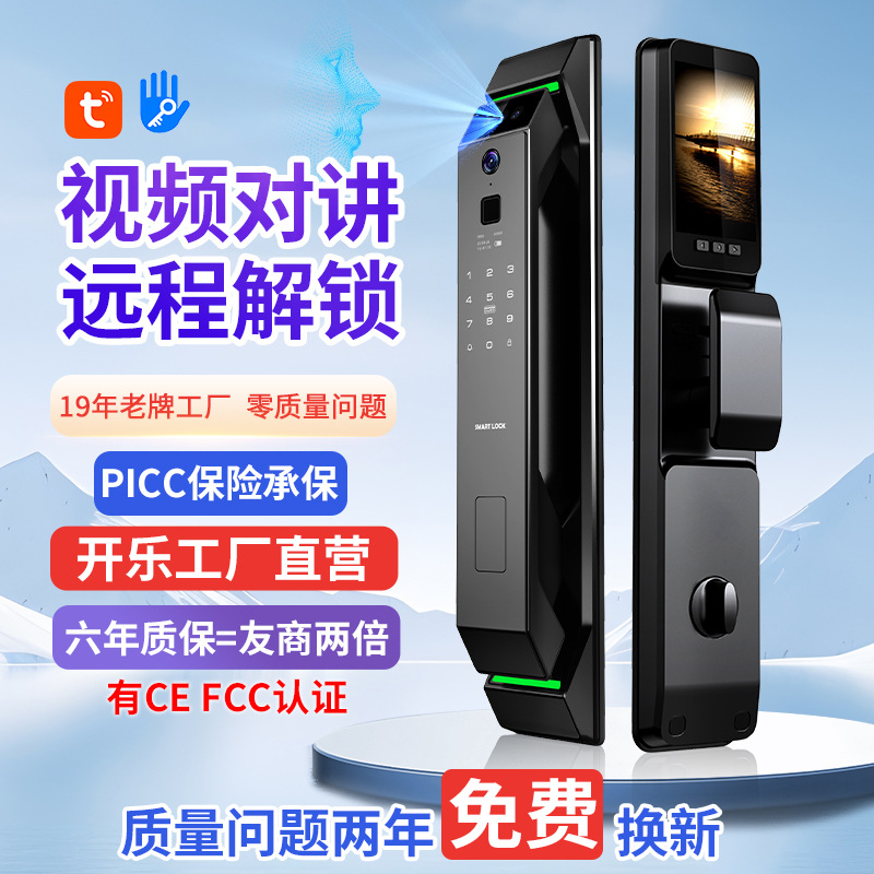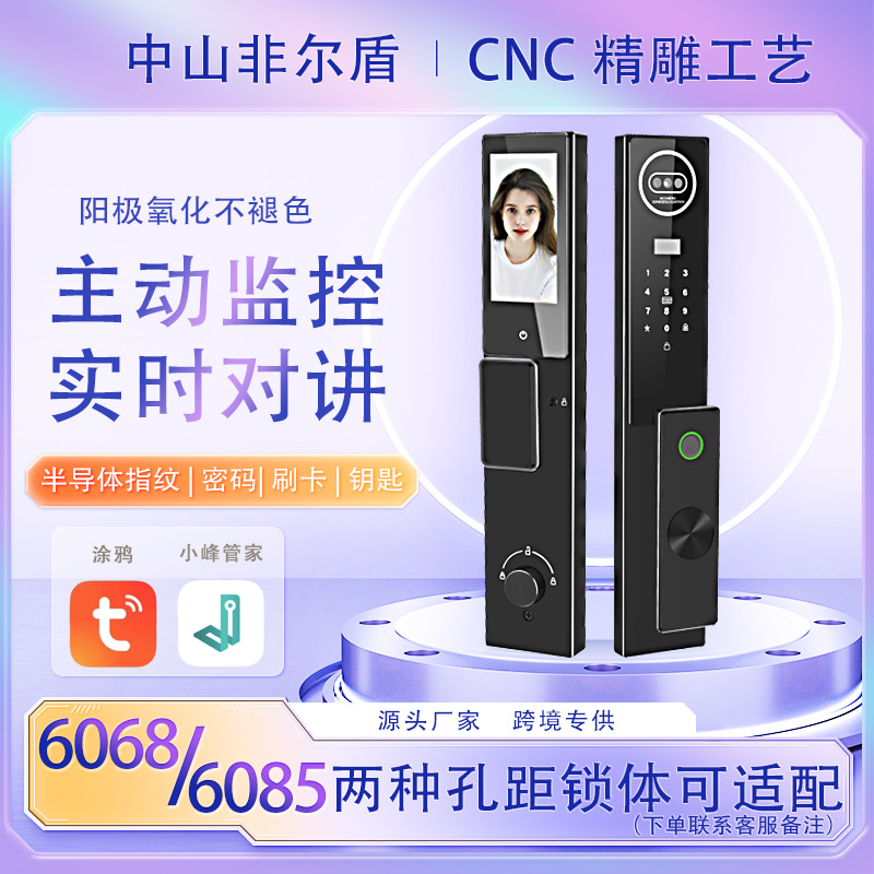 Kunci pintu visual sidik jari, kunci pintu pintar grafiti pintu kayu rumah tangga anti pencurian dengan kamera jarak jauh