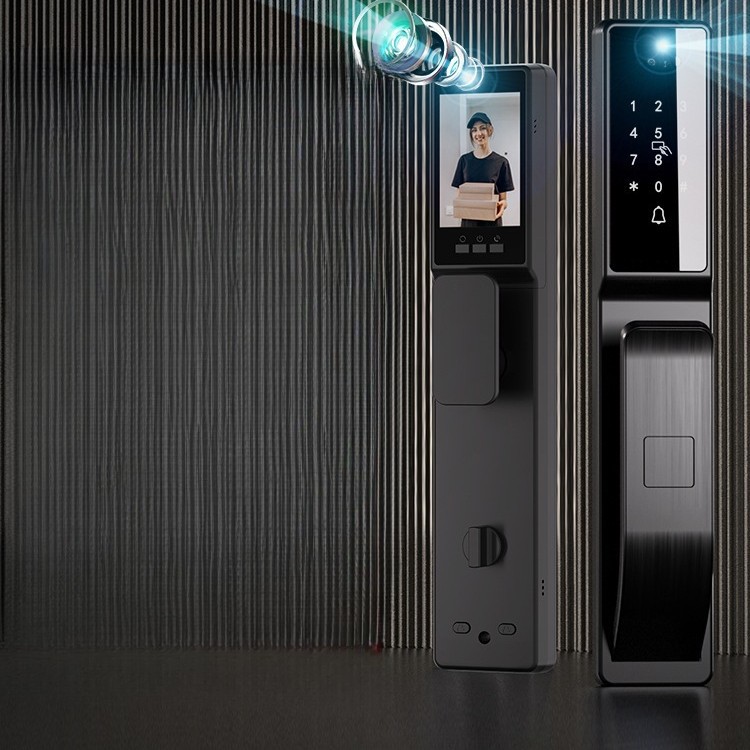 Kunci visual sidik jari, kunci pengenalan wajah 3d mata kucing layar besar dengan pemantauan otomatis kunci pintu rumah pintar