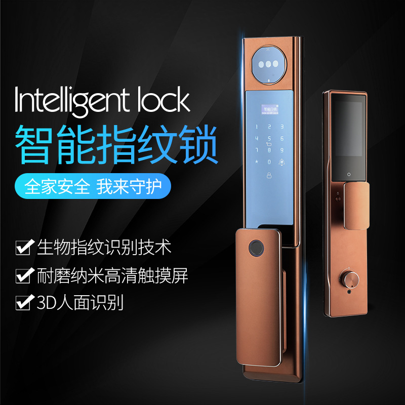 Kunci Fingerprint Pengenalan Wajah 3D CNC Ukiran Kunci Kata Sandi Universal untuk Pintu Keamanan Luar Ruangan Buka Kunci Jarak Jauh Cerdas