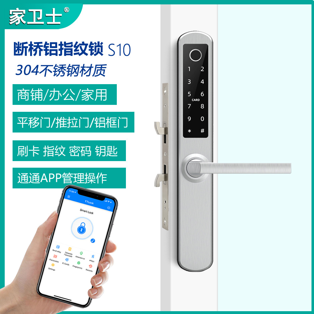 Shuanglishi kunci pintar jembatan rusak, aluminium sidik jari tepi sempit pintu kaca anti-maling KFC pintu geser kunci pintar