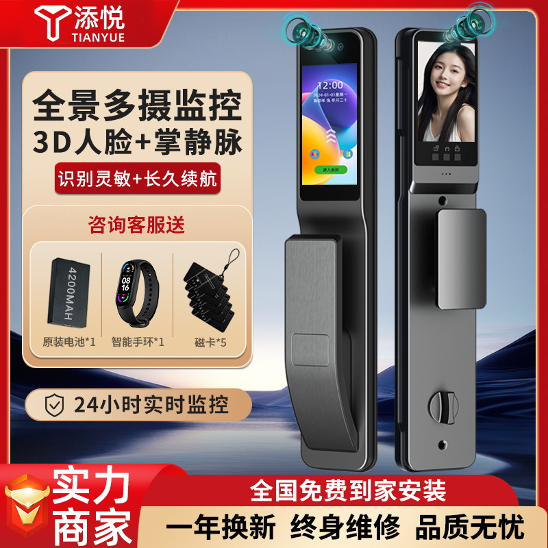 Lintas batas kunci pintu pintar 3D, pengenalan wajah sidik jari visual grafiti mata kucing WIFI