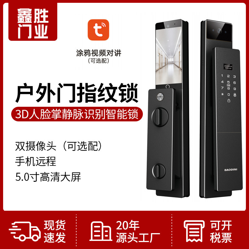 Kunci Pintu Cerdas Pengenalan Wajah 3D Nyata Layar Besar HD Otomatis Kunci Sandi Kunci Sidik Jari untuk Rumah Pengenalan Vena Palm