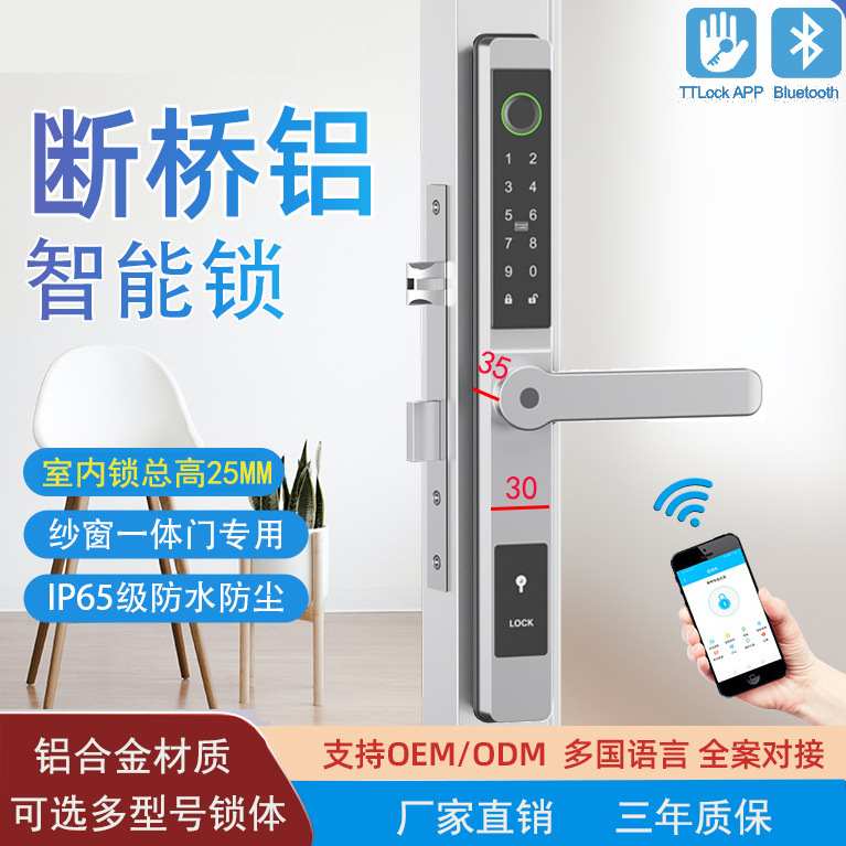 Broken Bridge Aluminium Smart Pintu Kunci Grosir Layar Layar Super Pendek Luar Ruangan Tahan Air Fingerprint Kunci Kode Bluetooth Produsen