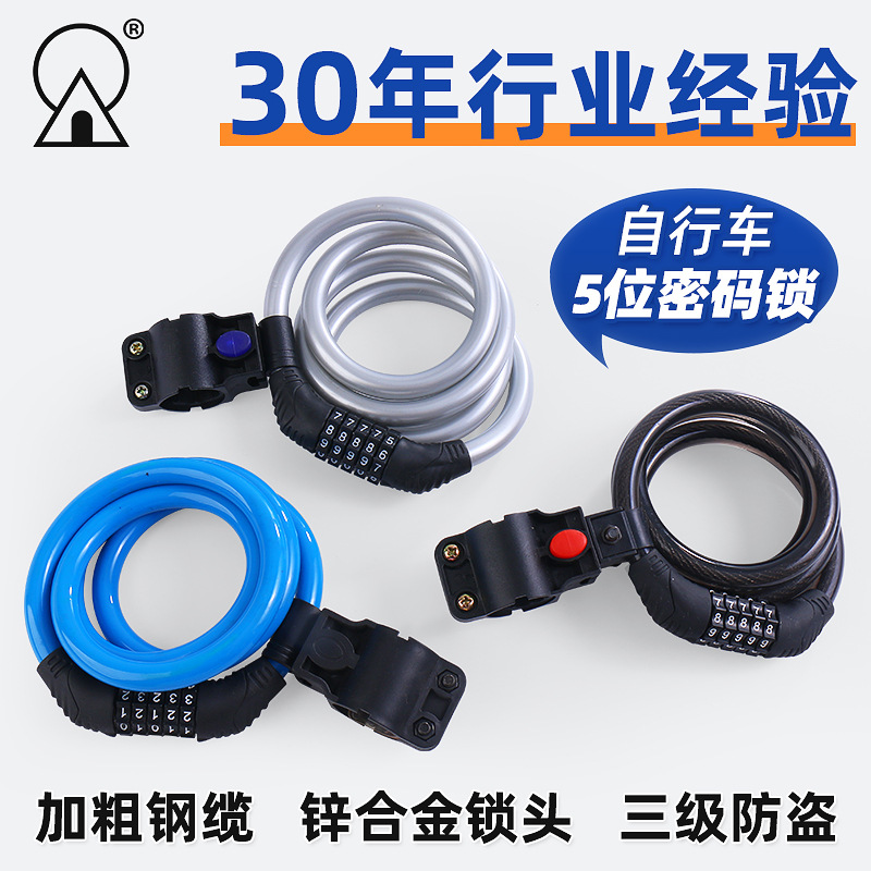 Kunci sepeda gunung, kunci sepeda lima digit kata sandi, kunci anti Maling, kunci kabel baja, kunci rantai