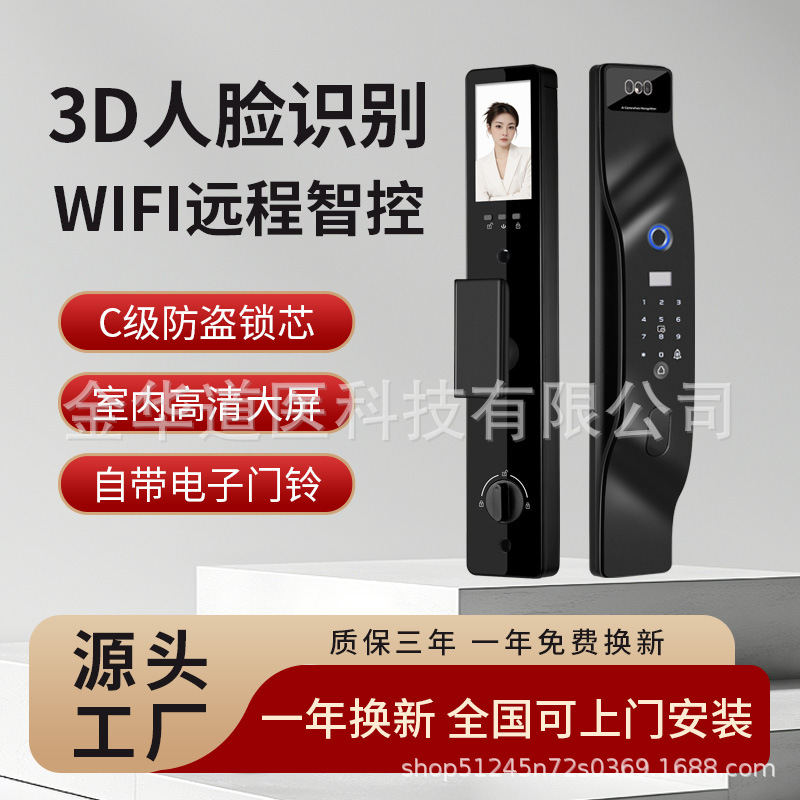 Kunci Kata Sandi Rumah 3D Pengenalan Wajah Mata Kucing Graffiti Pintu Masuk Kunci Pintu Anti Pencurian Smart Fingerprint Produsen Grosir