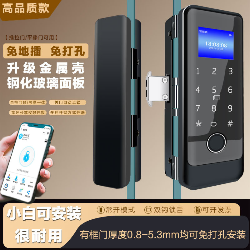 Kunci pintu kaca semikonduktor, kunci kata sandi, kartu pintu kantor, aplikasi ponsel TUYA, lubang, kunci sidik jari pintu kaca semikonduktor