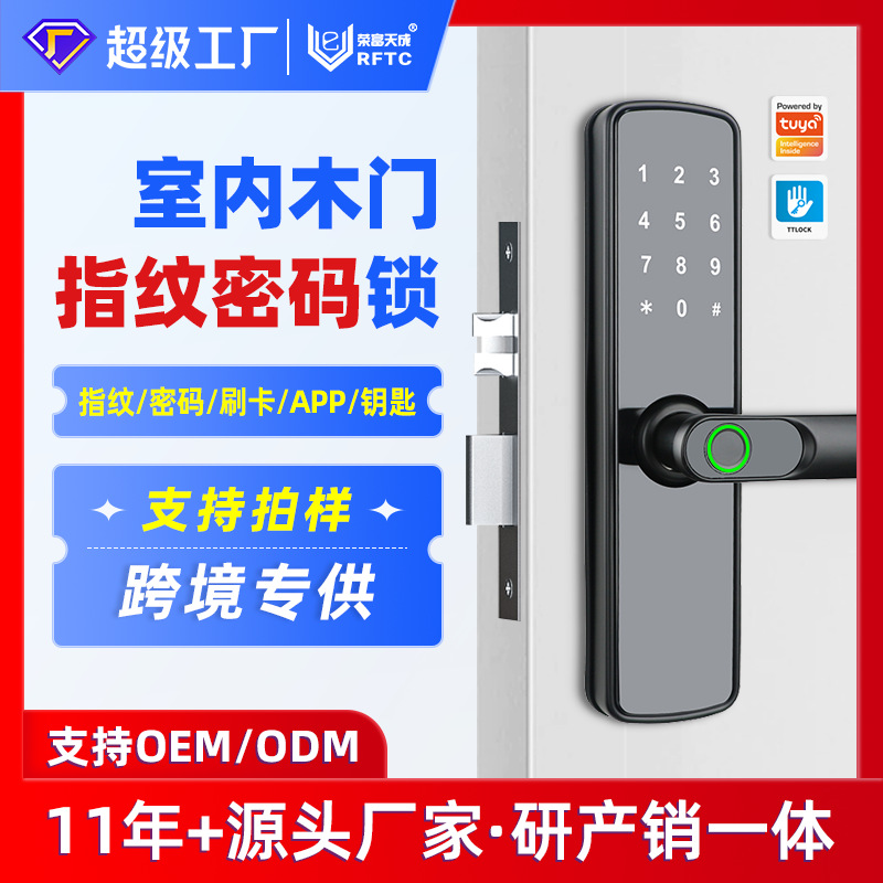 Kunci Tangan Pegangan Pintu Sidik Jari Cerdas Kunci Pintu Kamar Tidur Kunci Satu Sisi Kunci Saluran Lidah Tunggal Kunci Pintu Kayu Kunci Tambahan tuya