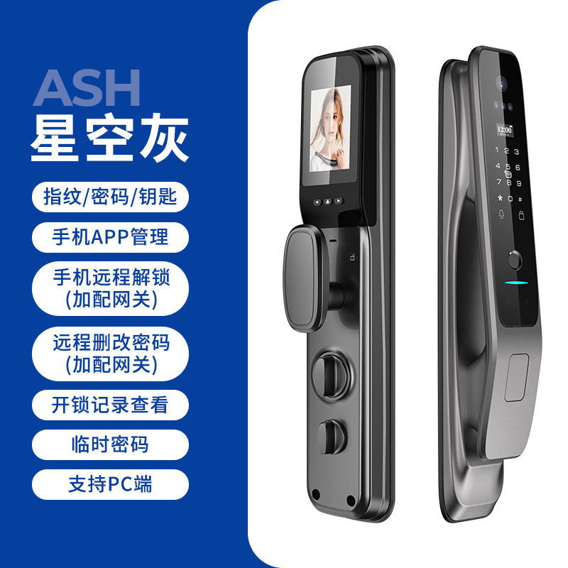 Kunci pintu otomatis sidik jari, kunci pintu rumah tangga anti-maling, kunci pintu pintar pengenalan wajah 3D, kunci kata sandi elektronik mata kucing visual