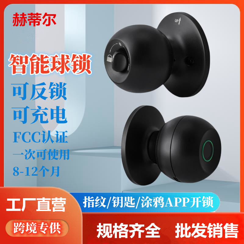 Kunci bola perdagangan luar negeri lintas batas, kunci pintu kamar grafiti cerdas sidik jari bulat Bluetooth kunci pintu kayu