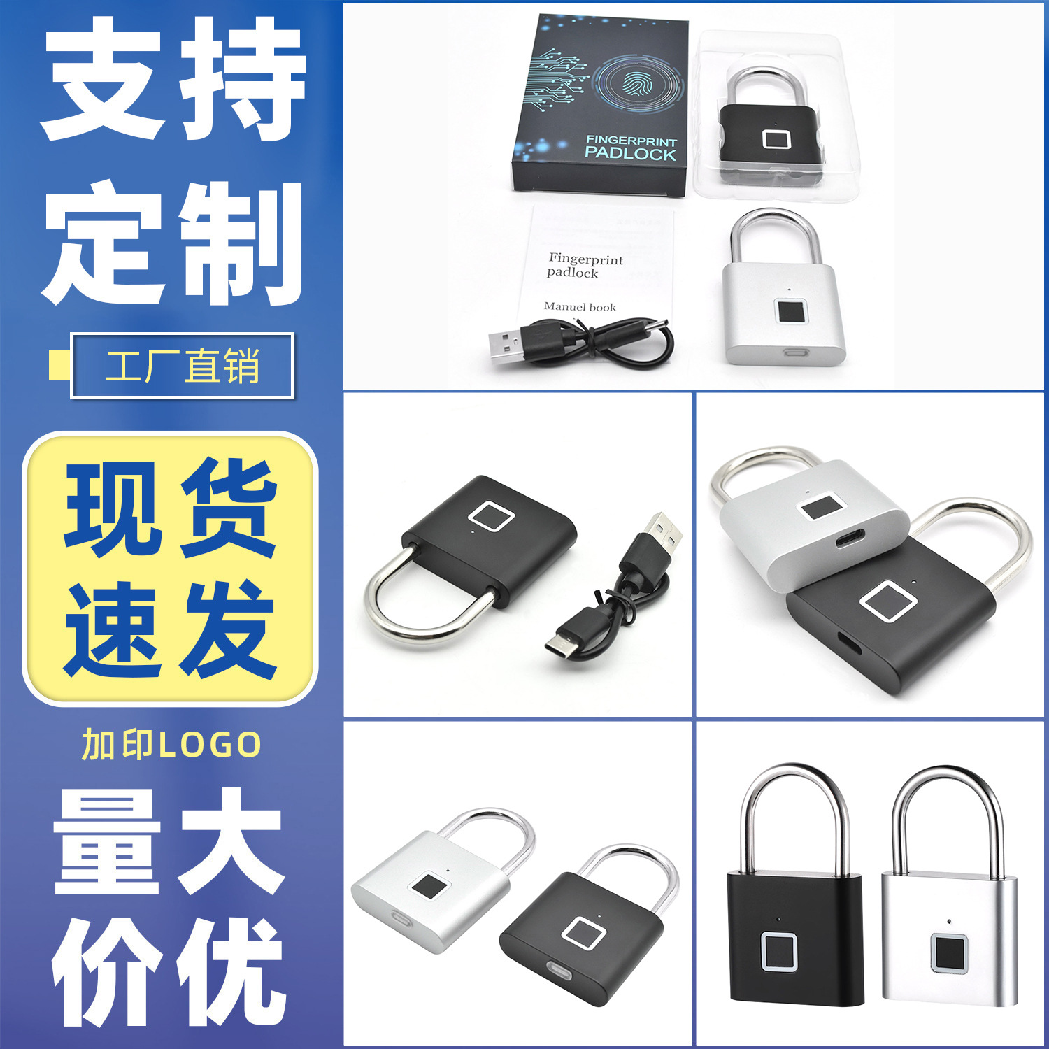 Baru gembok pintu bagasi kabinet penyimpanan rumah luar ruangan kunci kecil sidik jari cerdas tahan air anti-maling gembok sidik jari campuran seng