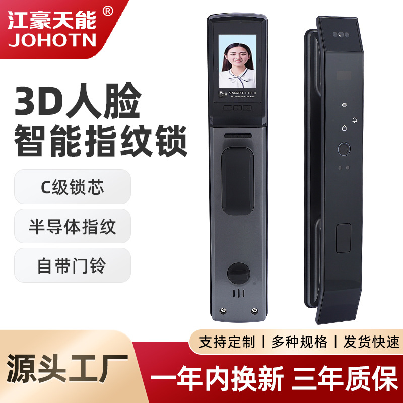 Kunci pintar otomatis pengenalan wajah 3D kunci sandi pintu rumah tangga anti-maling kunci sidik jari visual mata kucing kunci elektronik