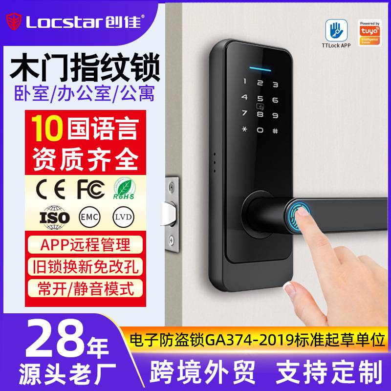 Lintas batas pintu kayu kunci sidik jari kantor kunci pintar pintu interior kunci elektronik kunci tuya kunci melalui kunci TTLOCK