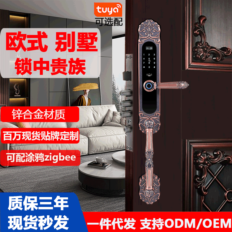 Zigbee grafiti kunci pintar, pengunci kata sandi elektronik dua pintu gaya villa dengan satu pegangan