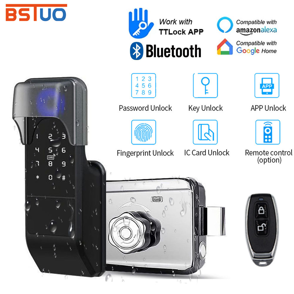 Kunci pintu apartemen tahan air luar ruangan, kunci kepala banteng melalui ttlock, kunci sidik jari pintar, aplikasi ponsel buka pintu
