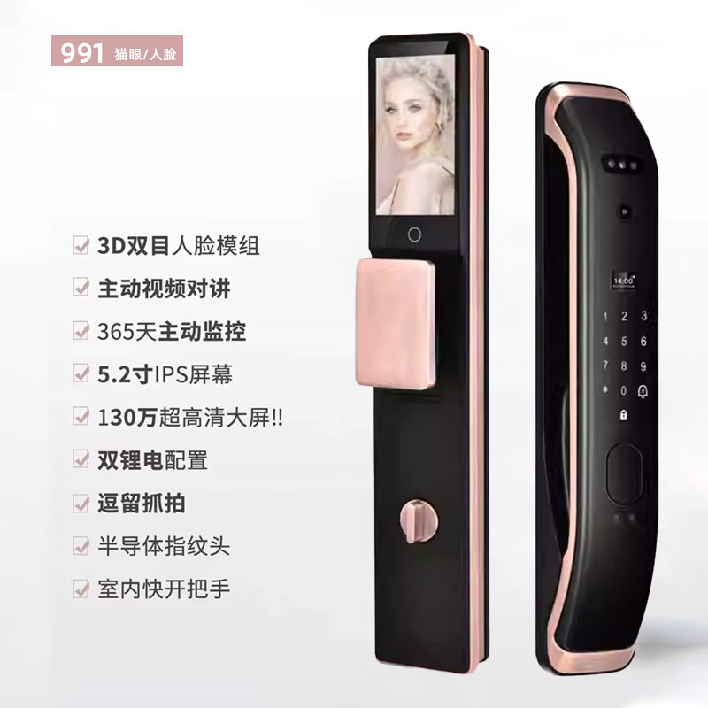 2025 Video Baru Standar Amerika Kunci kusam Penguncian Pintu Kayu Rumah Tangga Kunci Cerdas Lintas Batas Bisnis Listrik 1080 Monitor Bel Pintu