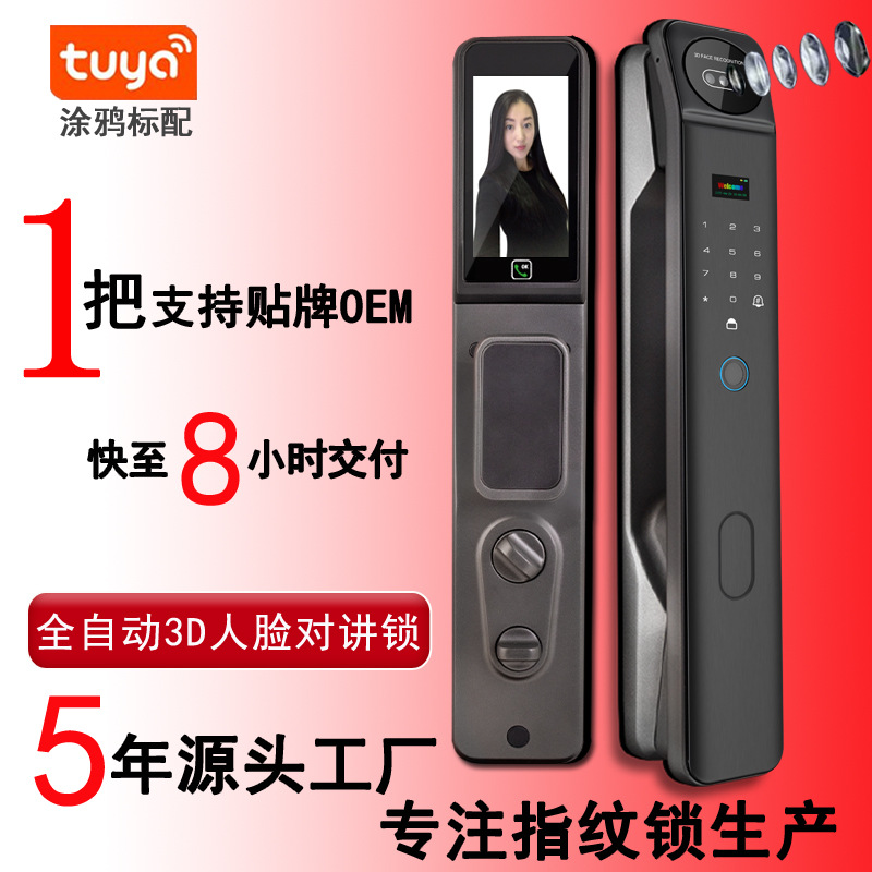 Kunci sidik jari graffiti pengenalan wajah otomatis kunci kata sandi ponsel rumah jarak jauh video interkom kunci pintar kustom