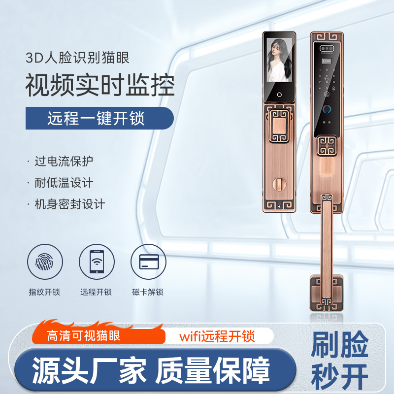 Pengenalan Wajah 3D Gaya Tiongkok Baru Kunci Cerdas Pintu Pintu Terbuka Ganda Villa Kunci Anti Pencurian Pintu Rumah Tangga Kunci Fingerprint Rumah Grosir