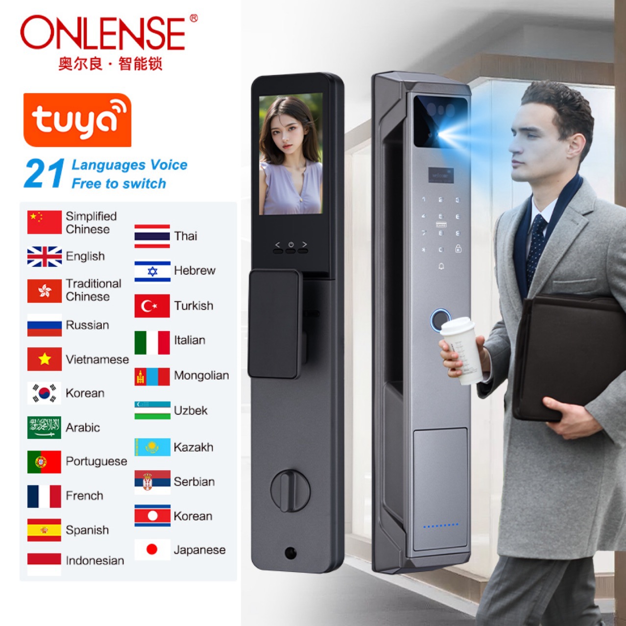 Graffiti multi-bahasa perdagangan luar negeri aktif interkom wajah vena telapak tangan kunci sidik jari ke pintu keamanan rumah kunci kode elektronik