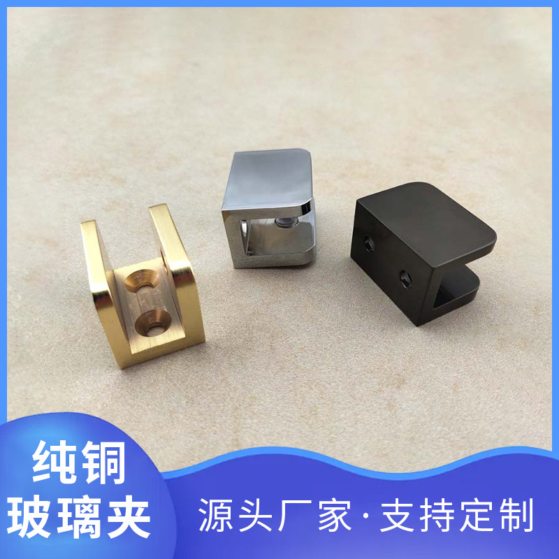 Klip kaca tembaga murni, klip pemasangan tanpa bor, penyangga rak tembaga, aksesoris kamar mandi, penyangga rak tembaga, perangkat keras kustomisasi