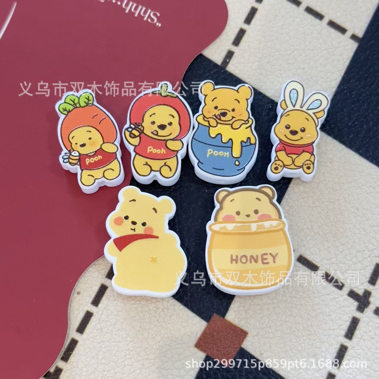 印花浮雕可爱蜜罐维尼熊板材串珠 diy手链手机链包挂车挂饰品配件