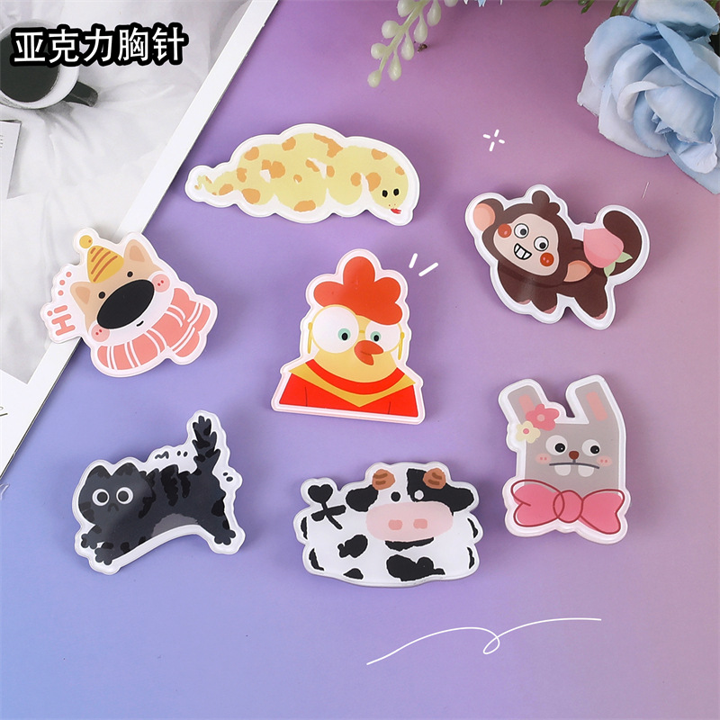 新款外贸徽章森林动物派对可爱亚克力胸针卡通贴片发夹冰箱贴配件