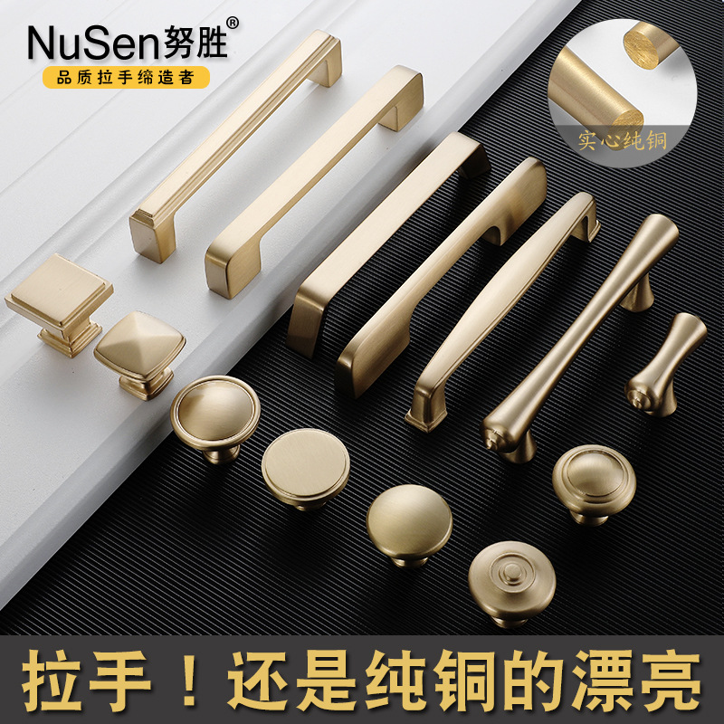 Pegangan pintu kabinet tembaga murni, gaya Amerika gagang laci Nordik modern minimalis emas retro kuningan pegangan kecil