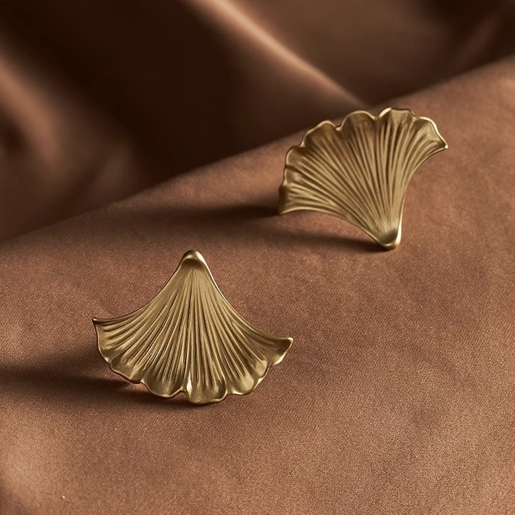Pintu Kabinet pegangan daun ginkgo, ringan kreatif ringan pegangan pintu lemari pintu lubang tunggal lemari Nordik murni cahaya tembaga pegangan emas mewah