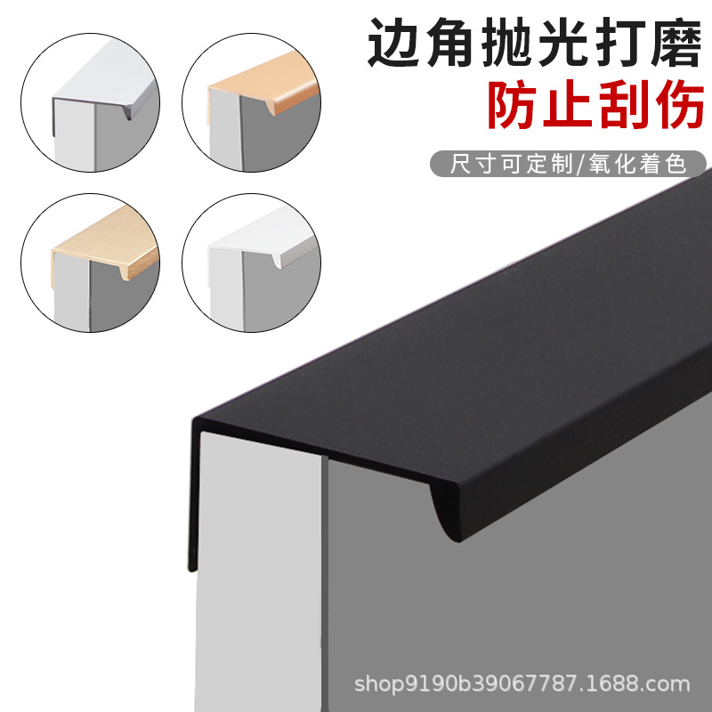 Pegangan tidak terlihat, laci pintu kabinet minimalis modern mewah pegangan pintu lemari emas hitam panjang pegangan pintu samping