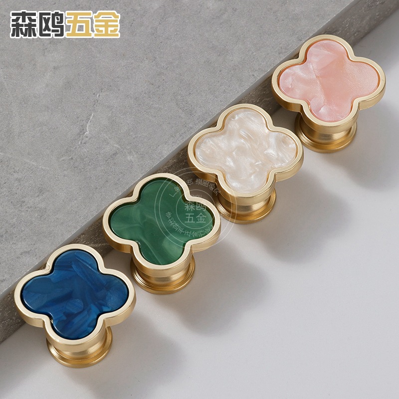 新款四叶草抽屉柜门衣柜锌合金单孔门把手简约个性创意亚克力拉手