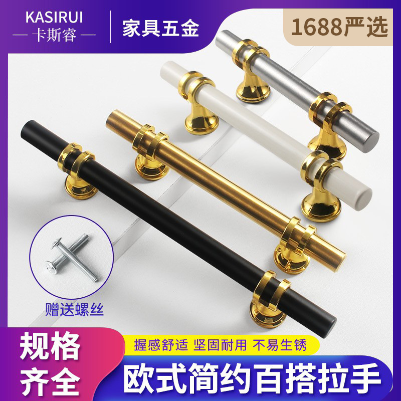 Pegangan Setengah Lingkaran Emas Terang Tarik Pegangan Gaya Eropa Lemari Kamar Mandi Minimalis Modern Ringan dan Mewah 64 Lubang Pegangan Paduan Aluminium