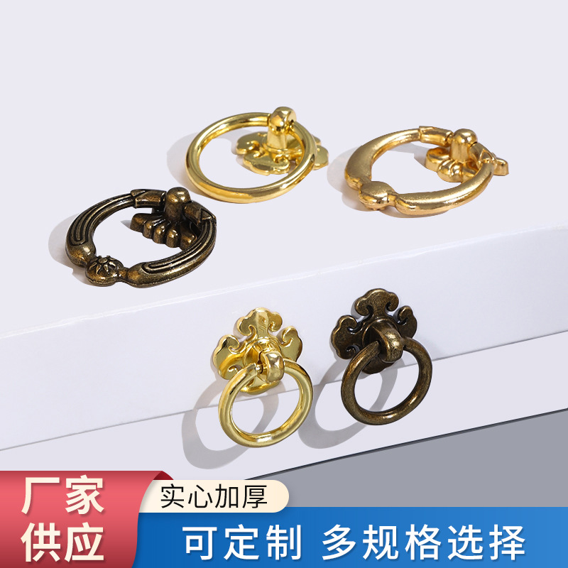 Laci pintu kabinet mebel antik pegangan kecil cincin paduan seng imitasi gaya Tiongkok laci obat Tiongkok cincin tarik lubang tunggal