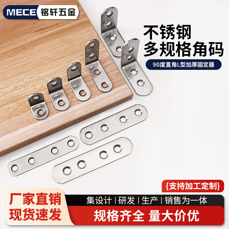 Besi tahan karat Kode sudut 90 ° sudut kanan tipe-l, braket dudukan dipertebal, rak perabotan perangkat keras, konektor pel