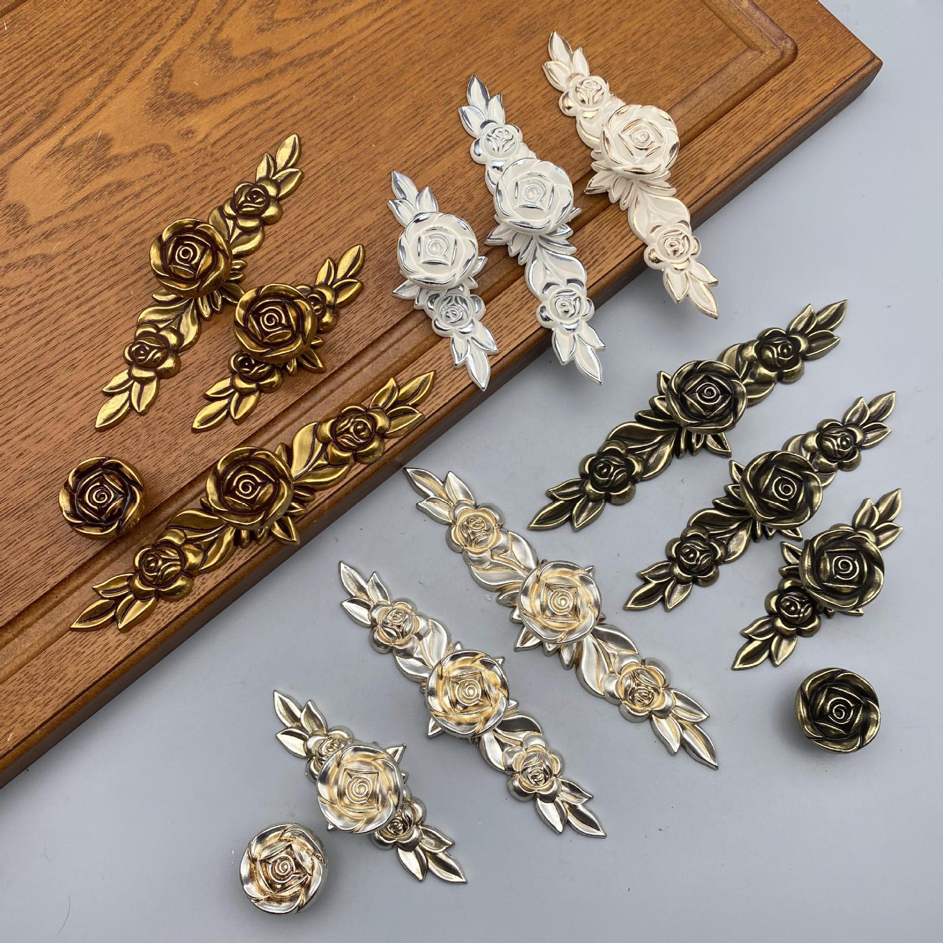 Populer paduan seng Eropa mawar kuno perak perunggu kabinet kopi pegangan pintu laci kabinet instalasi pegangan di saham
