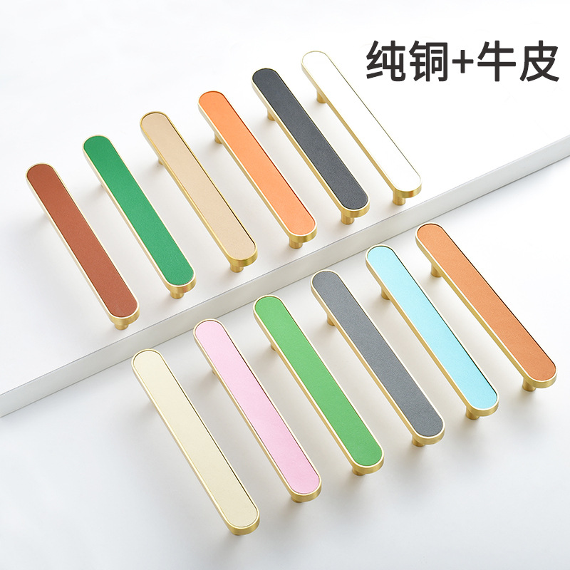 Pegangan pintu kabinet lemari kabinet laci lubang ganda pegangan kulit tembaga murni pegangan pintu Amerika sederhana emas batang panjang pegangan tembaga