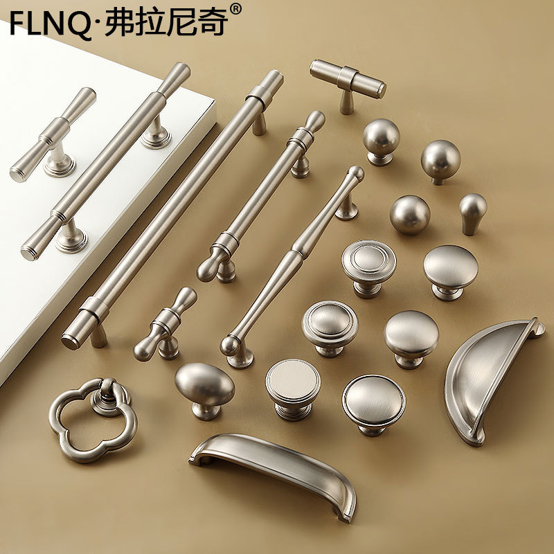 Bahan Tembaga Murni Bahan Tembaga Ringan Mewah Amerika Matte Warna Perak Semua Bahan Tembaga Pegangan Pintu Lemari Model Prancis Bahan Perak Tarik Pegangan Kuningan