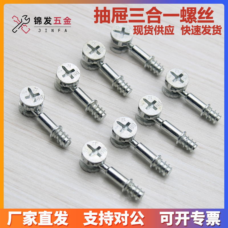 Furnitur 10mm sekrup tiga-dalam-satu sekrup lemari pakaian ukuran kecil pemasangan cepat kunci roda eksentrik perangkat keras pengencang dua dalam satu koneksi