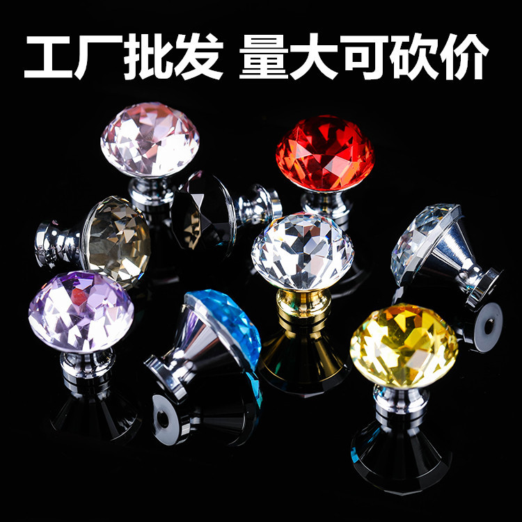 Pegangan lemari pakaian minimalis Modern, pegangan berlian kristal gagang laci pintu lubang tunggal, aksesori Aloi seng furnitur Eropa dan Amerika