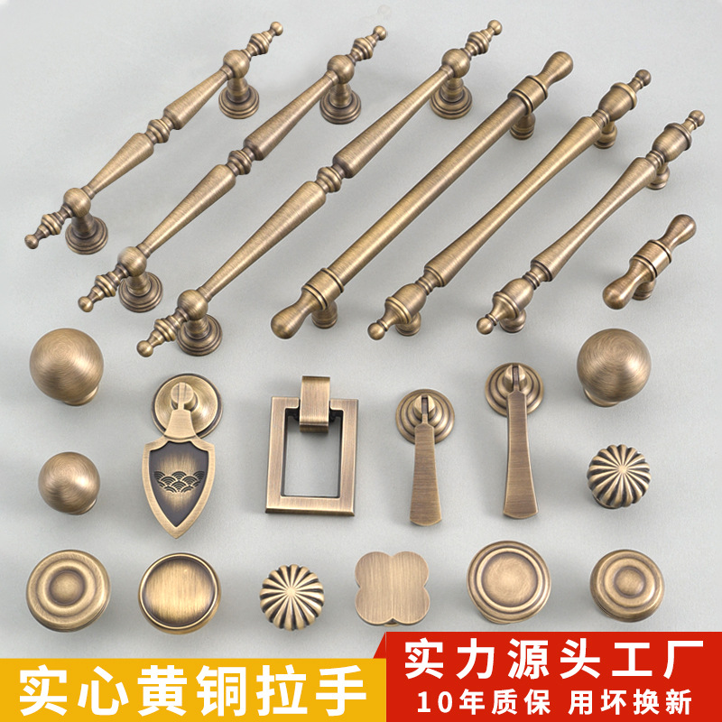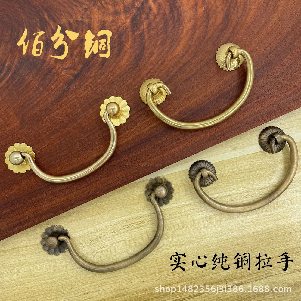 Pegangan kotak kayu gagang laci furnitur antik gaya Tiongkok pegangan kuningan murni kabinet retro gagang kecil