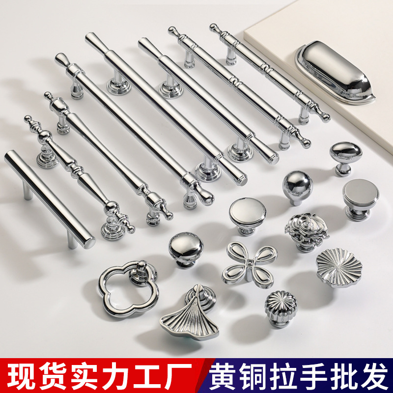 Grosir Prancis pegangan pintu kabinet perak cerah gagang pintu lemari baju gagang pintu kabinet minimalis modern gagang tembaga Amerika